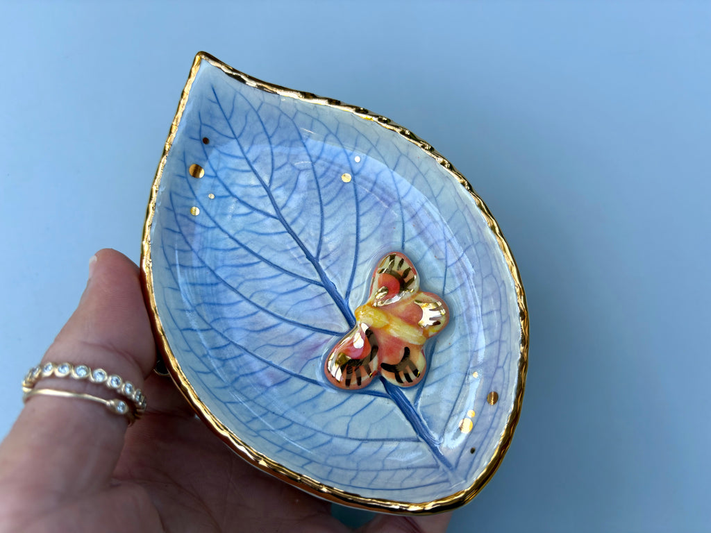Small Butterfly Jewelry Leaf Dish with Gold Accent