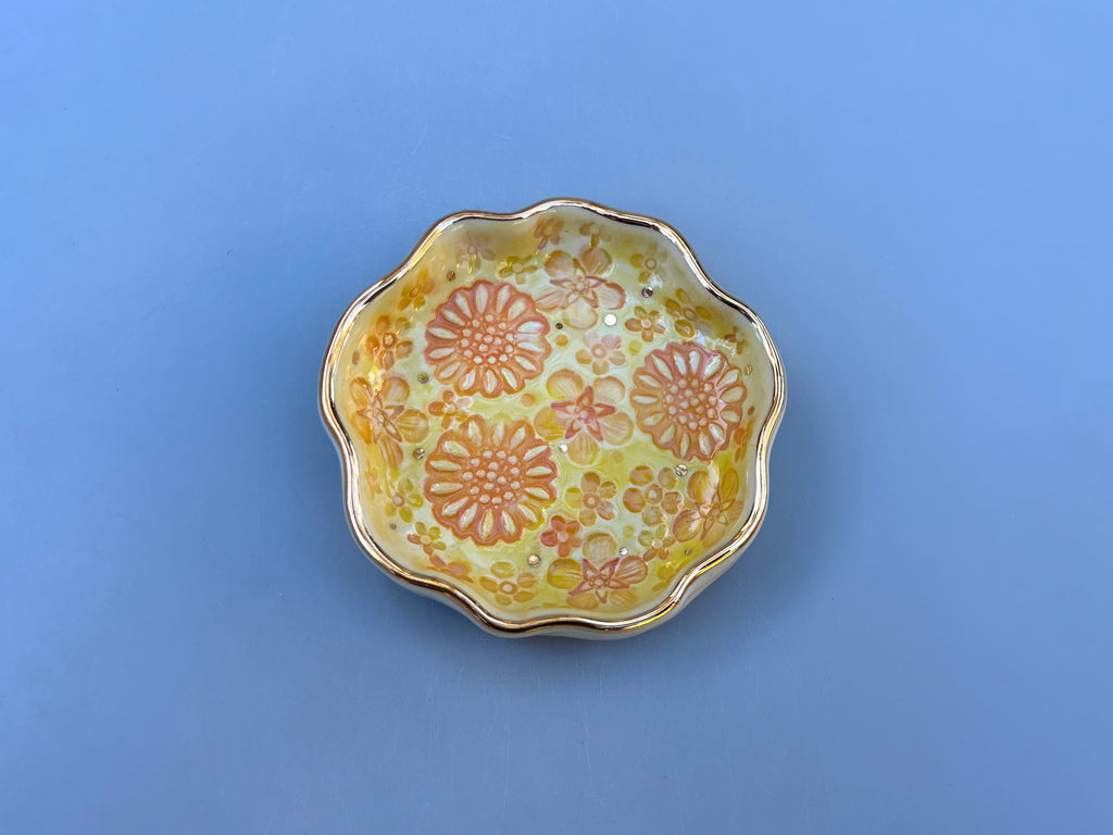 Mini Sunrise Bouquet Jewelry Holder, Ceramic Dish with Gold Accents